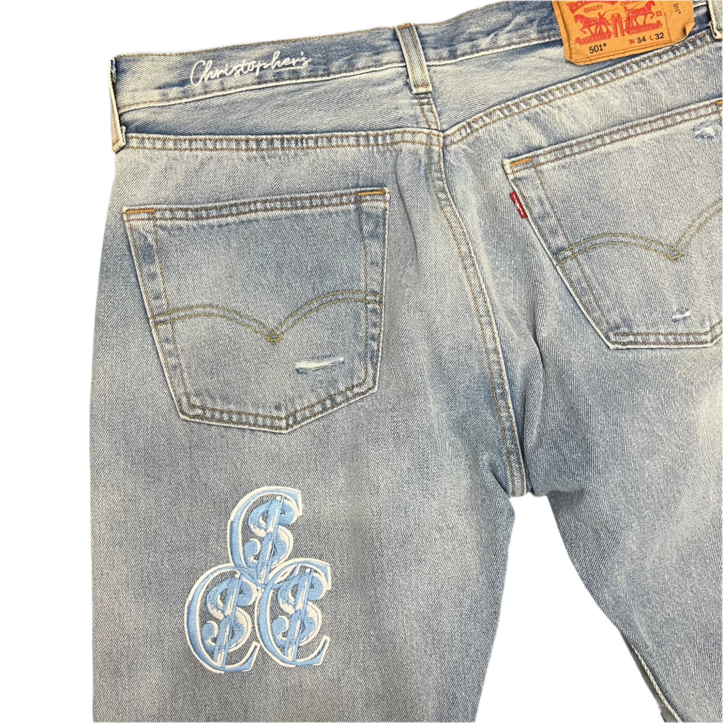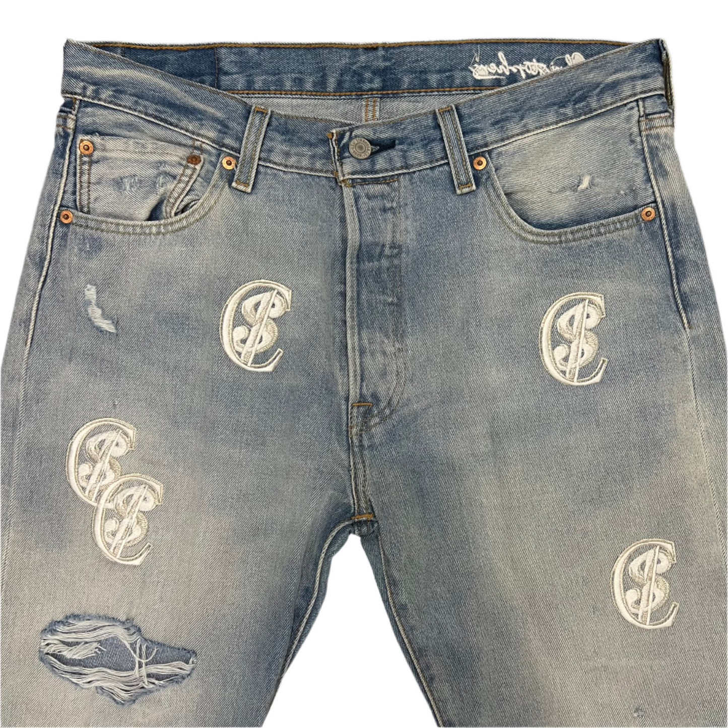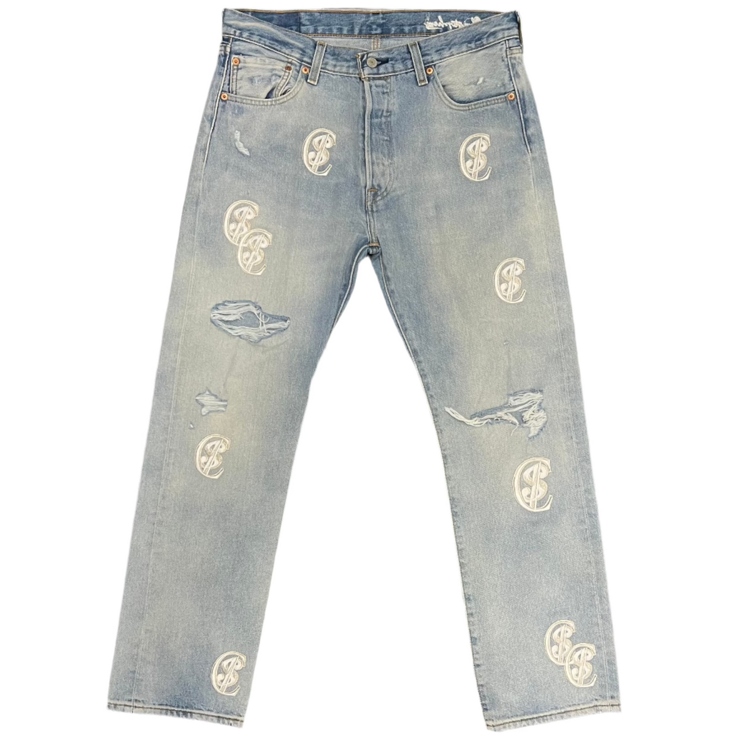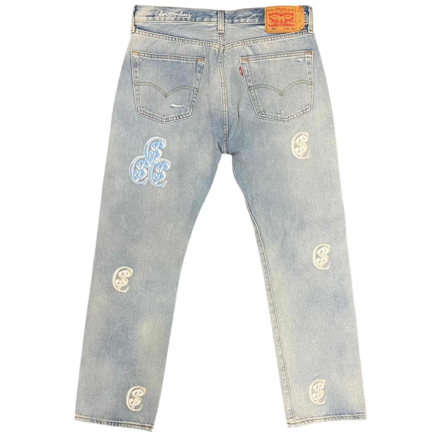 Chris Smokes C$ Levi's Silver/Blue Patch Denim Jeans Light Wash