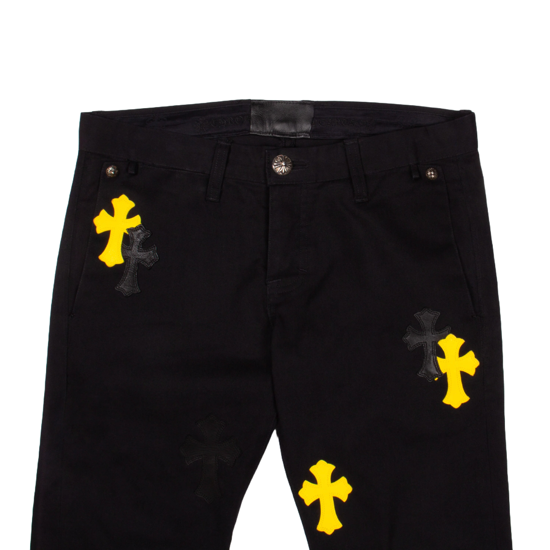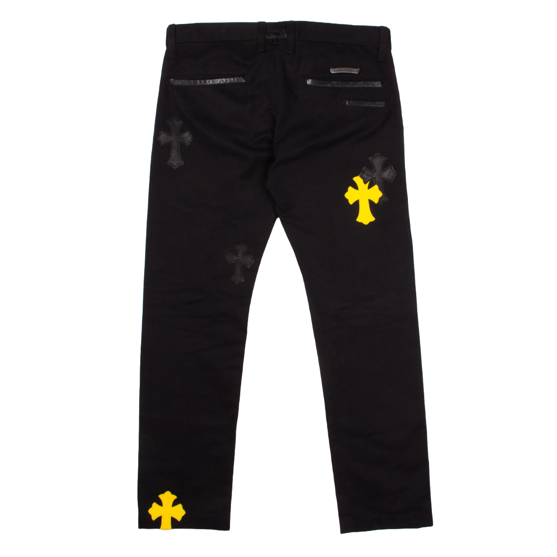 Chrome Hearts Black & Yellow Leather Cross Patch Chino Pants Black