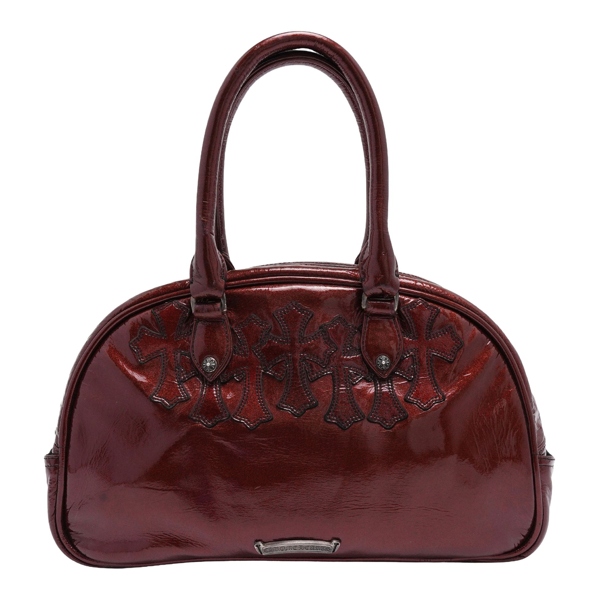 Chrome Hearts Patent Leather Galaxy Silver Cross Patch Bowling Bag Red