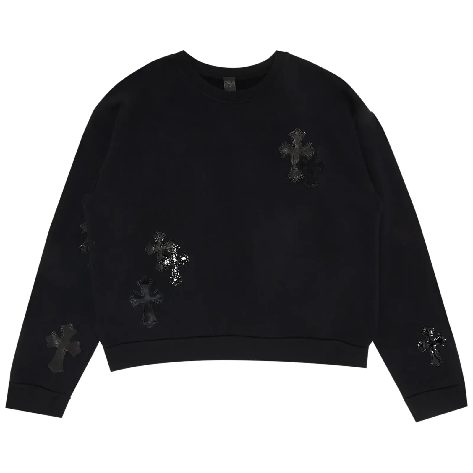 Chrome Hearts Ponyhair Patent Leather Cross Patch Crewneck Black