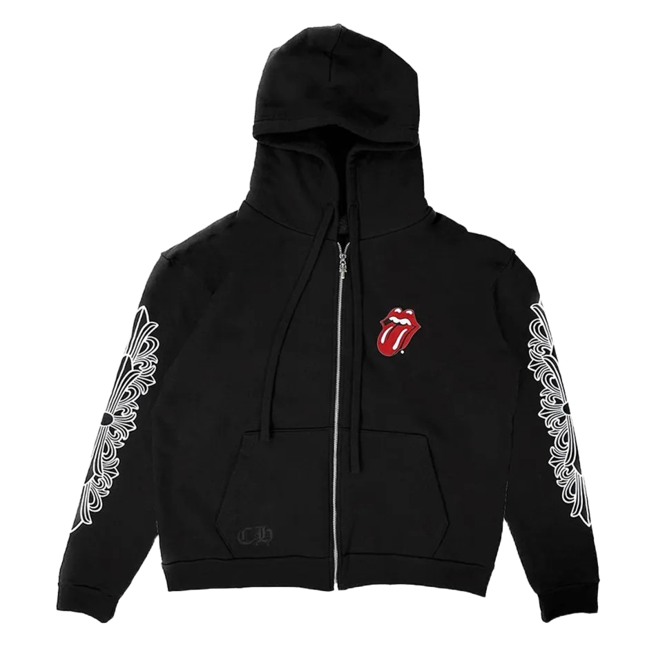 Chrome Hearts Rolling Stones Horseshoe Zip-Up Hoodie Black
